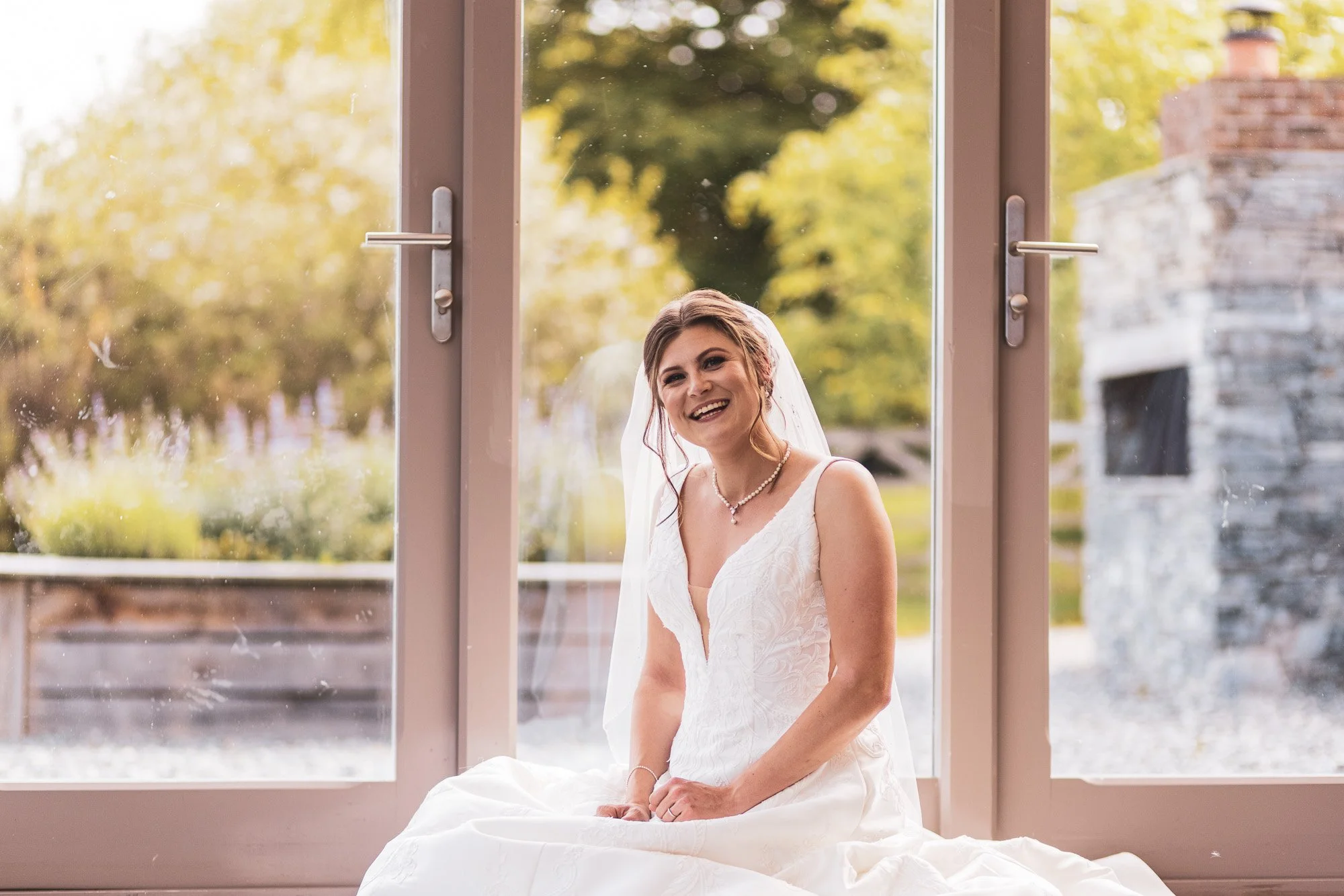 The bridal party got ready in a beautiful room with old beams and a balcony looking out onto the gardens and Cornish Countryside. It also has a dressing table and mirror and sofa so there was plenty of space for the hair and make up team to set up.