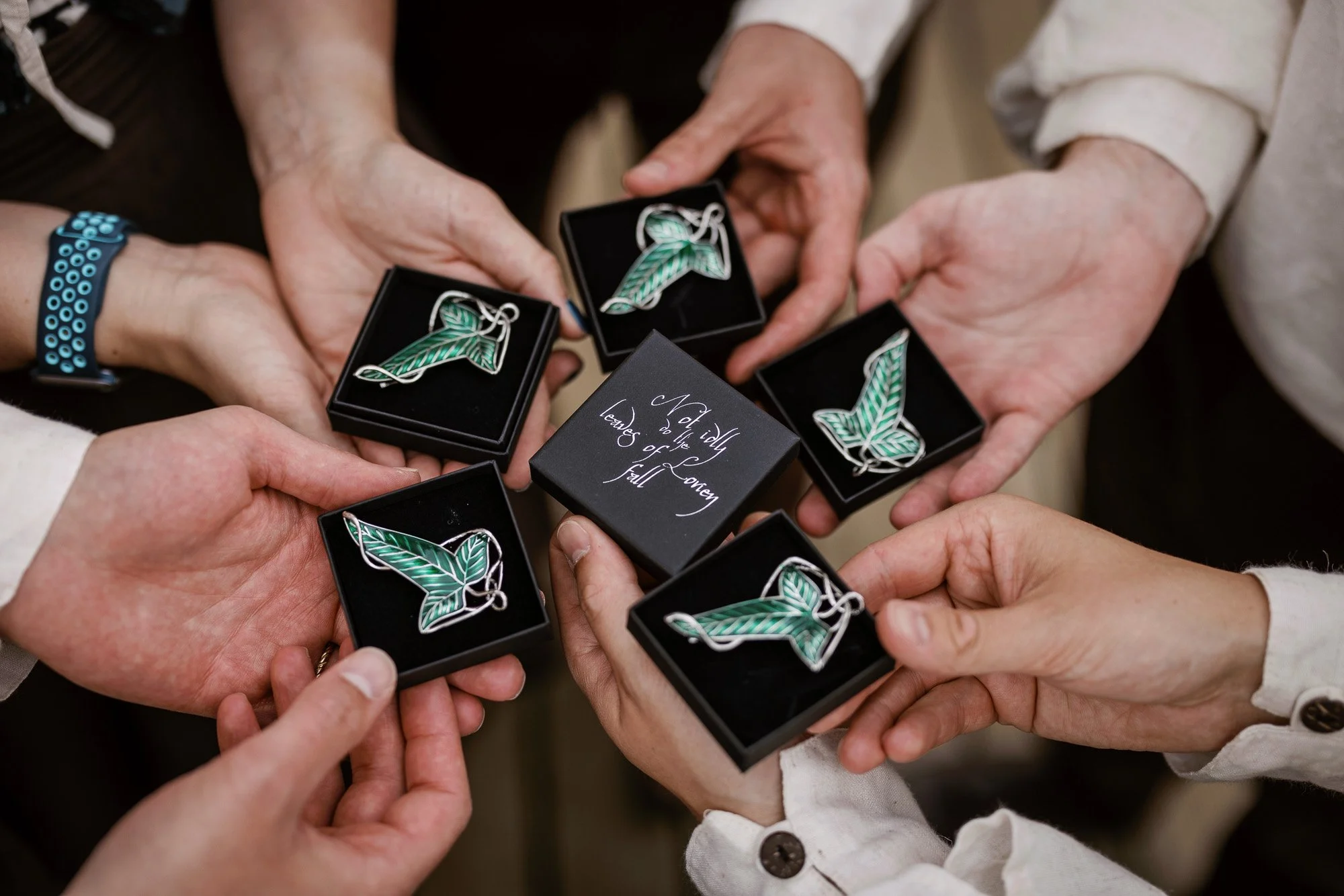 Ben & Nathalie were very inspired by Lord of the Rings and their wedding was like a wedding day in Hobbiton. Their presentation piece is this beautiful vintage terrarium with decor from their wedding day and bee-related pieces as Nathalie works with bees.